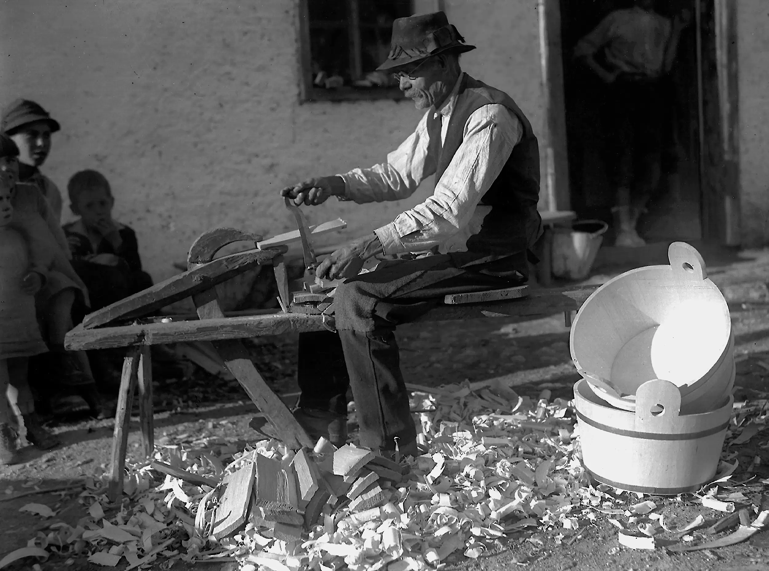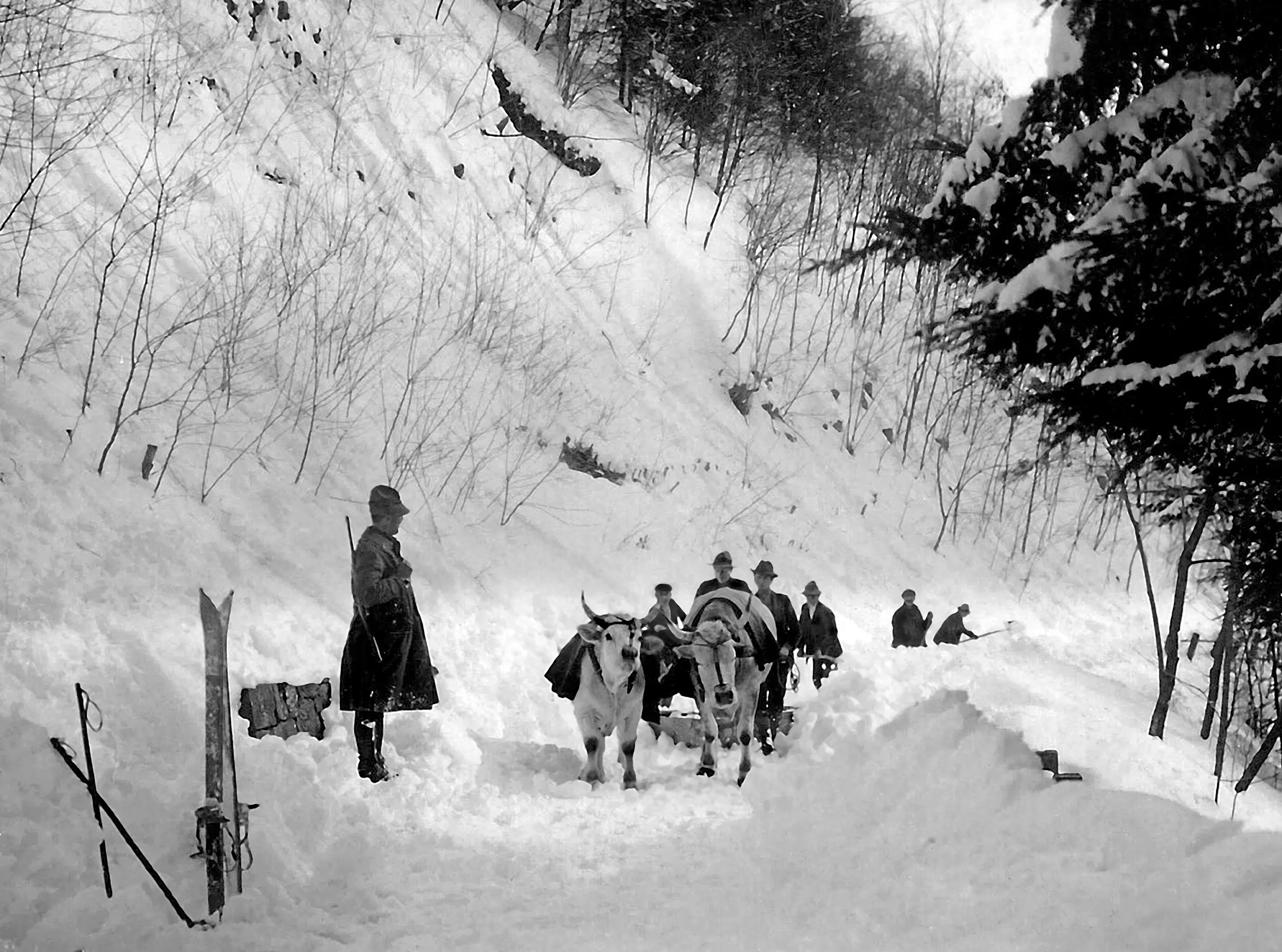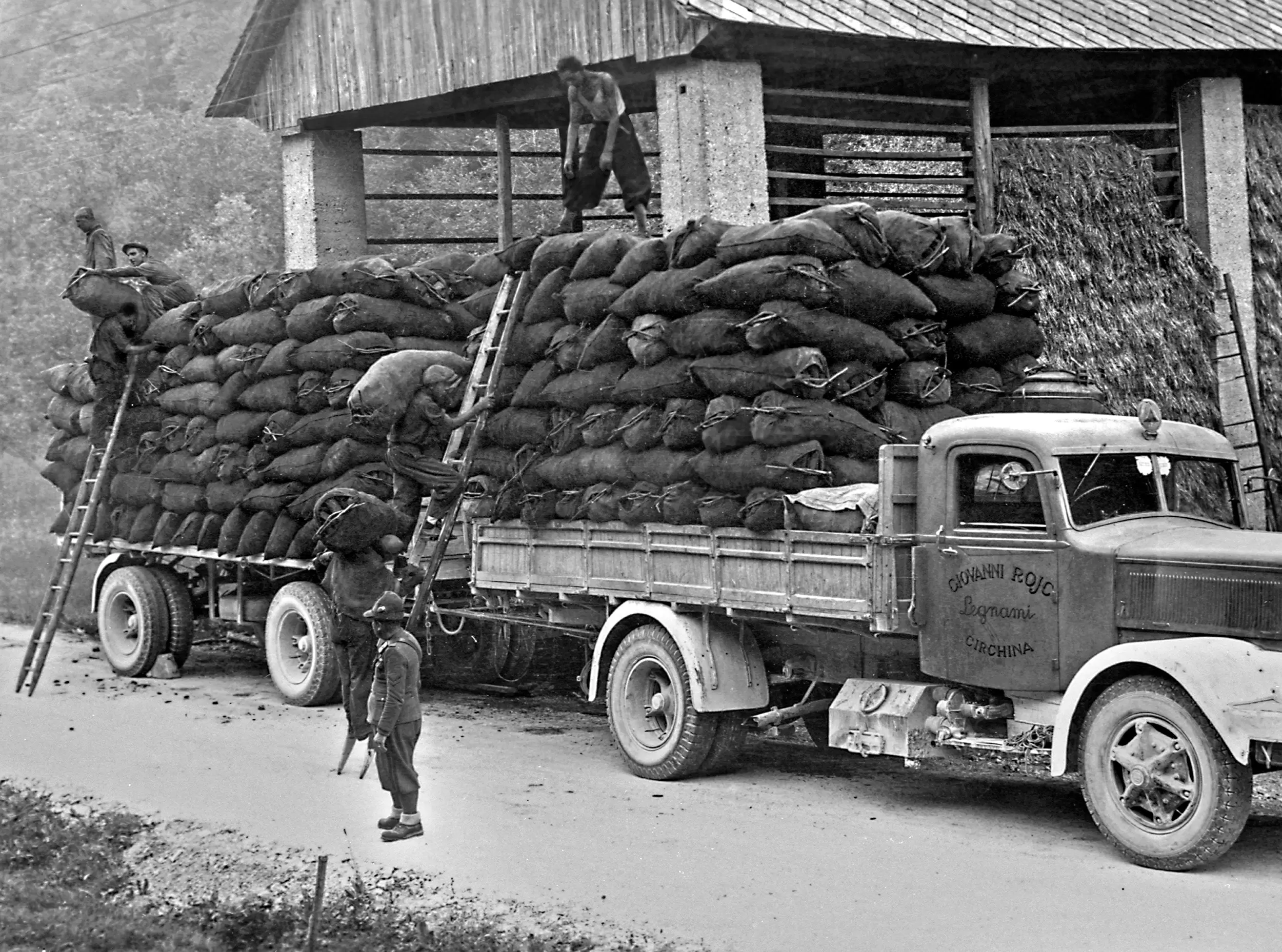 Guardando questi scatti ritroviamo, sul loro posto di lavoro, i protagonisti di quei palcoscenici naturali e silvani: boscaioli, vivaiste, forestali, carbonai, carrettieri, trasportatori, piantatrici, abili artigiani del legno, cestai e segantini.