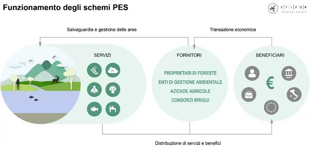 Chi fornisce questi servizi – ad esempio i proprietari di foreste, le aziende agricole, i consorzi irrigui o gli enti di gestione ambientale – assume un ruolo attivo nella produzione e manutenzione di beni comuni, mentre chi ne beneficia è chiamato a contribuire per garantirne la continuità e la qualità. La logica alla base dei PES è quella di creare transazioni volontarie tra fornitori e beneficiari, basate su accordi chiari e misurabili, che assicurino da un lato una giusta remunerazione per chi tutela gli ecosistemi, e dall’altro un accesso garantito e sostenibile ai benefici per chi li utilizza.